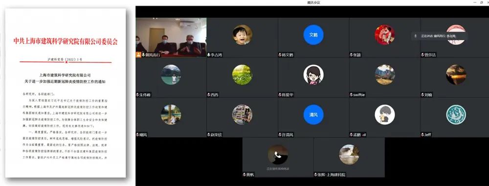 上海建科院黨委堅(jiān)持把廣大干部職工及家屬的身體健康放在第一位,第一時(shí)間向員工發(fā)出公開信,黨政聯(lián)合發(fā)文《關(guān)于進(jìn)一步加強(qiáng)近期新冠肺炎疫情防控工作的通知》,鼓勵(lì)士氣、共克時(shí)艱。通過每日更新員工封控與生產(chǎn)數(shù)據(jù),上海建科院黨委及時(shí)了解各部門支援情況,嚴(yán)格根據(jù)集團(tuán)黨委要求做好報(bào)備,并加強(qiáng)宣傳動(dòng)員工作,宣揚(yáng)正能量,倡議志愿活動(dòng)。在院黨委號(hào)召下,黨員通過“先鋒上?!毙〕绦蛲瓿缮鐓^(qū)報(bào)到,主動(dòng)亮明黨員身份;3個(gè)黨支部組建“黨員保障小隊(duì)”,以實(shí)際行動(dòng),投身疫情防控的戰(zhàn)斗當(dāng)中,起到了黨員先鋒表率作用。