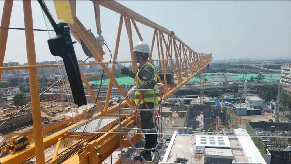 機械檢測中心團隊頂烈日、攀高塔、查隱患,在臨港、青島、啟東各地建筑工地現(xiàn)場,對大型起重機械以及多種類大檢查項目進行檢驗檢測。他們在“5+2”的工作模式下持續(xù)進行塔式起重機等機械設備安全性能檢測,為全國建設工程設備安全運行貢獻自己的力量。