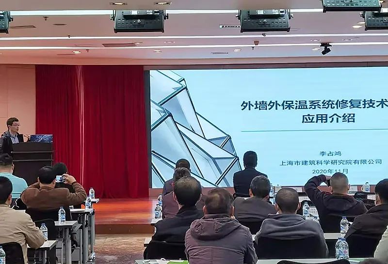 上海建科院材料所總工程師陳寧代表標(biāo)準(zhǔn)編制組,對《標(biāo)準(zhǔn)》的編制背景、編制思路、標(biāo)準(zhǔn)內(nèi)容及工程應(yīng)用等進(jìn)行了介紹和解讀。針對本市外墻外保溫系統(tǒng)特點(diǎn),標(biāo)準(zhǔn)編制過程確立了四個原則:一是兼顧安全與節(jié)能;二是建立系統(tǒng)與各層材料相結(jié)合的檢測評估技術(shù);三是基于評估結(jié)果制定有針對性的修復(fù)技術(shù)方案;四是確保修復(fù)技術(shù)方案的高效、環(huán)保、耐久和少擾民。會上對標(biāo)準(zhǔn)的總則、術(shù)語、基本規(guī)定、檢測與評估、系統(tǒng)及材料、設(shè)計(jì)、施工和驗(yàn)收等八個章節(jié)及附錄,進(jìn)行了條文講解,重點(diǎn)介紹了技術(shù)指標(biāo)的試驗(yàn)和工程驗(yàn)證、外墻外保溫系統(tǒng)質(zhì)量技術(shù)狀況評估方法、各種修復(fù)技術(shù)特點(diǎn)及其適用范圍,以及依據(jù)評估結(jié)果確定修復(fù)技術(shù)的有關(guān)規(guī)定。