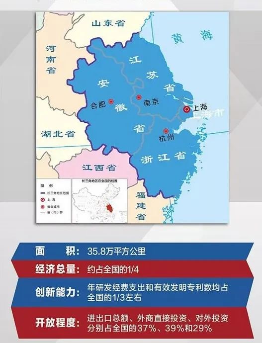 中共中央、國務(wù)院于2019年12月1日印發(fā)《長江三角洲區(qū)域一體化發(fā)展規(guī)劃綱要》,規(guī)劃范圍包括上海市、江蘇省、浙江省、安徽省全域(面積35.8萬平方公里),長江三角洲區(qū)域一體化發(fā)展并上升為國家戰(zhàn)略。