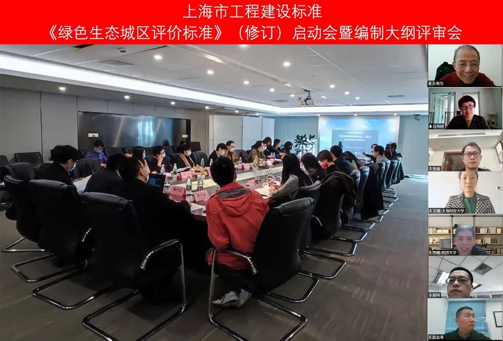 本次會(huì)議采取線上+線下的方式進(jìn)行,來(lái)自主編單位市建科院和建研科技股份有限公司上海分公司,參編單位市綠建協(xié)會(huì)、市規(guī)劃院、市政院、市環(huán)科院、同濟(jì)大學(xué)、財(cái)經(jīng)大學(xué)、東方延華、中建科技、建學(xué)建筑,以及參加單位萬(wàn)科集團(tuán)、商湯科技、同濟(jì)設(shè)計(jì)院、山恒科技等編制單位代表共二十余人參加了本次會(huì)議。