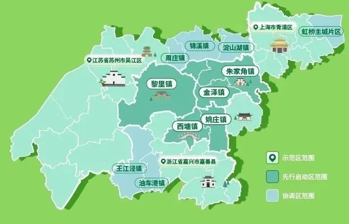 建設(shè)長三角生態(tài)綠色一體化發(fā)展示范區(qū)(以下簡稱示范區(qū)),是實(shí)施長三角一體化發(fā)展戰(zhàn)略的先手棋和突破口,是我國區(qū)域一體化制度創(chuàng)新實(shí)踐的重大舉措和空間載體。示范區(qū)規(guī)劃范圍包括上海市青浦區(qū)、江蘇省蘇州市吳江區(qū)、浙江省嘉興市嘉善縣全域,約2413 平方公里(含水域面積約350 平方公里)。