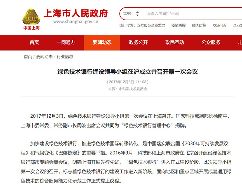 國家科技部與上海市府開展部市共建綠色技術銀行運行的工作,承接綠色技術的原始創(chuàng)新,擔負綠色技術的產業(yè)創(chuàng)新、落地轉化和國際轉移的使命。