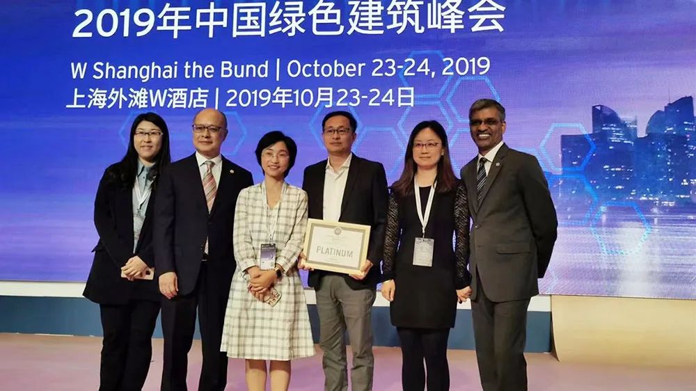 張穎(左三)在2019年中國(guó)綠色建筑峰會(huì)頒獎(jiǎng)現(xiàn)場(chǎng)