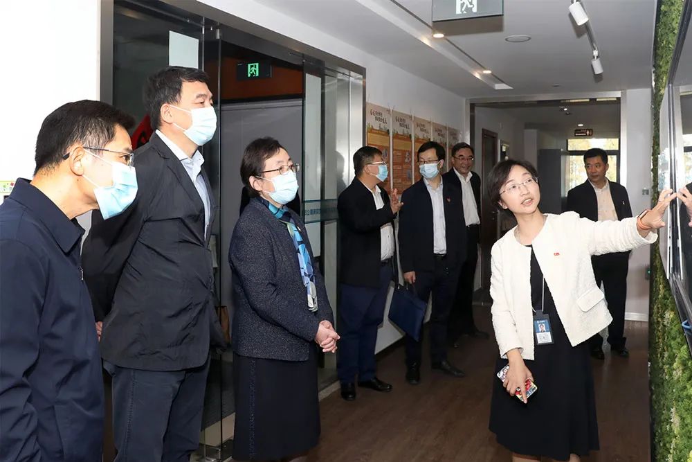 張穎(右一)在現(xiàn)場(chǎng)向嘉賓解說(shuō)綠色建筑技術(shù)體系