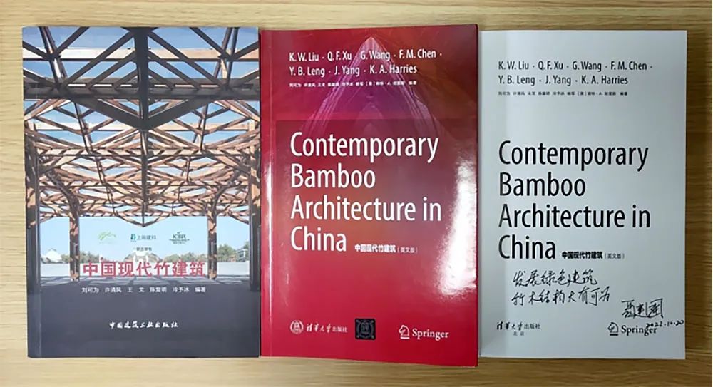 會議開幕式上,舉行了由國際竹藤組織、上海建筑科學研究院有限公司、國際竹藤中心、清華大學和匹茲堡大學專家共同編著的《中國現(xiàn)代竹建筑》(英文版)新書發(fā)布儀式。該書在2019年中文版基礎(chǔ)上進行了內(nèi)容更新,融入了更多中國精彩建筑案例,于今年4月由清華大學出版社和施普林格出版社在海內(nèi)外聯(lián)合發(fā)布。中英文版《中國現(xiàn)代竹建筑》均得到中國工程科技中長期發(fā)展戰(zhàn)略研究領(lǐng)域戰(zhàn)略研究項目“面向2035的中國竹建筑工程發(fā)展戰(zhàn)略和關(guān)鍵技術(shù)研究” 支持。杜睿、王戈、石永久、宋曄皓、劉可為、王任飛等參編單位代表和作者出席了國際竹藤組織北京總部新書發(fā)布儀式,作者許清風、冷予冰、楊軍和肯特·哈瑞斯線上出席。