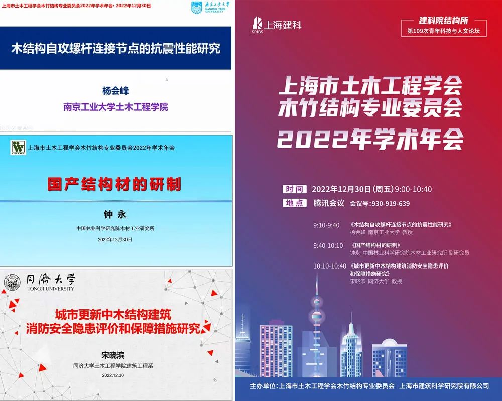 2022年12月30日,上海市建筑科學(xué)研究院有限公司舉辦上海市土木工程學(xué)會木竹結(jié)構(gòu)專業(yè)委員會2022年學(xué)術(shù)年會暨建科院結(jié)構(gòu)所第109次青年科技與人文論壇,論壇于線上順利召開。上海市土木工程學(xué)會副理事長兼秘書長葉國強(qiáng)教高、副秘書長崔敉,木竹專委會委員和會員代表、以及上海建科集團(tuán)技術(shù)骨干參加了本次會議。論壇由建科院總工程師、專委會主任委員許清風(fēng)教高主持。