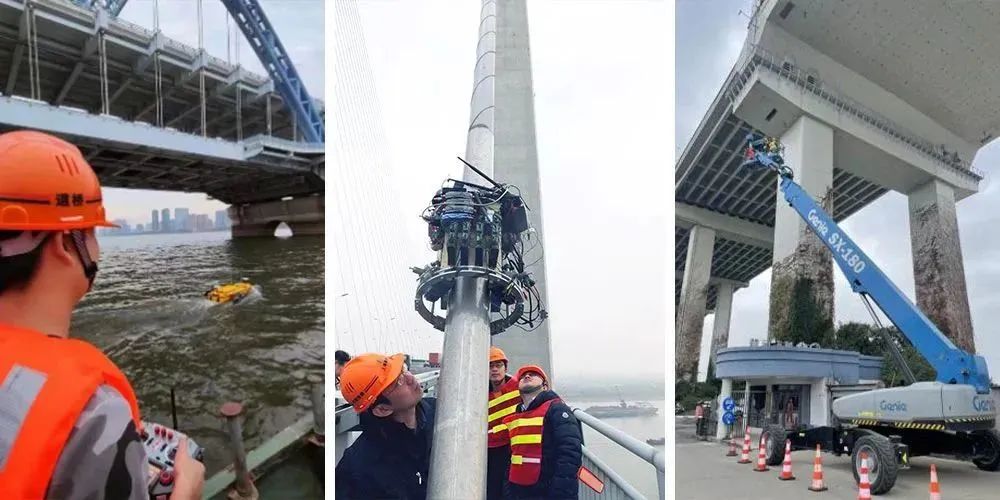 在壯闊的大橋下面游呀游呀游,在悠長的拉索上面爬呀爬呀爬。在高聳的橋梁下面搭呀搭呀搭,保障橋梁通行安全守護(hù)千萬家。