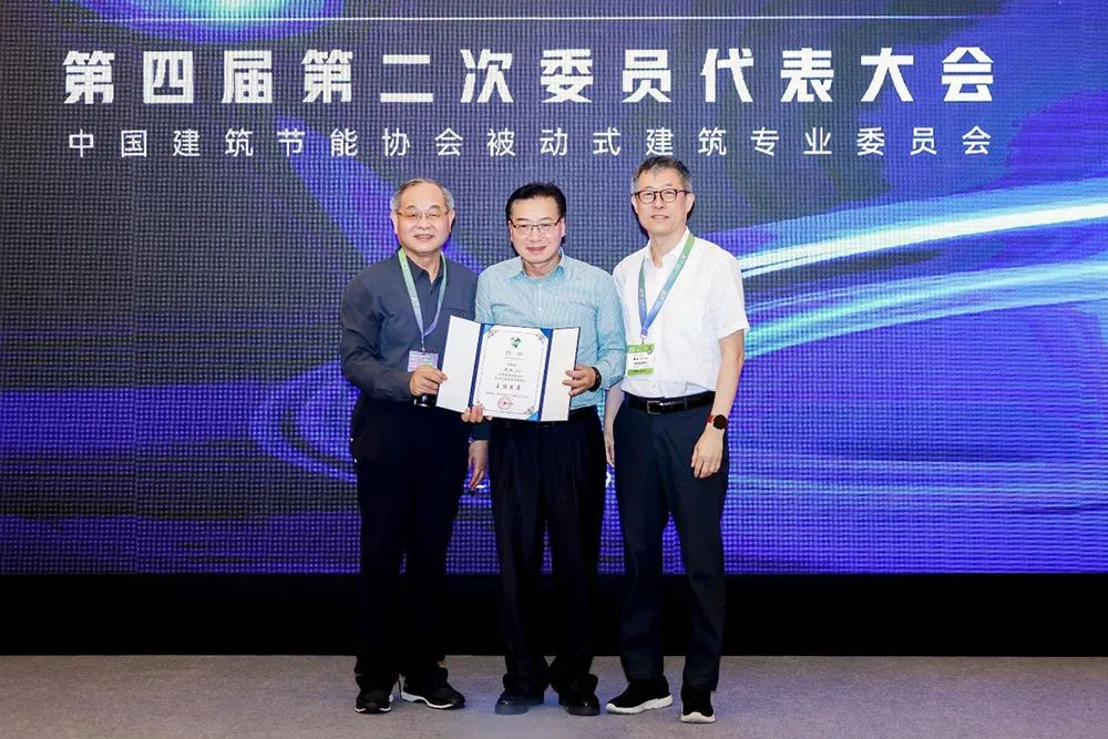 經(jīng)中國建筑節(jié)能協(xié)會被動式建筑專委會第四屆第七次常務委員會推選,上海建科集團股份有限公司資深總工程師徐強當選為新一屆輪值主席,由輪值主席張旭和榮譽主席謝遠建聯(lián)合為徐強頒發(fā)新一屆輪值主席聘書。