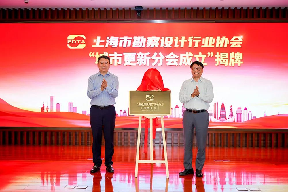 顧偉華和王吉杰共同為上海市勘察設(shè)計行業(yè)協(xié)會城市更新分會揭牌,標志著城市更新分會正式成立,現(xiàn)場領(lǐng)導(dǎo)、嘉賓及各理事單位代表、線上觀眾共同見證。
