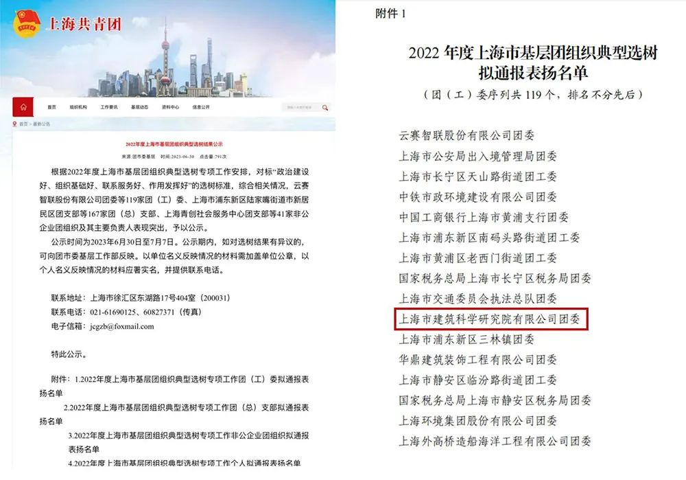 近日,2022年度上海市基層團(tuán)組織典型選樹(shù)結(jié)果公示,上海市建筑科學(xué)研究院有限公司團(tuán)委在選樹(shù)過(guò)程中表現(xiàn)突出,對(duì)標(biāo)“政治建設(shè)好、組織基礎(chǔ)好、聯(lián)系服務(wù)好、作用發(fā)揮好”的選樹(shù)標(biāo)準(zhǔn),入選“上海市基層團(tuán)組織典型選樹(shù)”名單,黃帆同志獲個(gè)人通報(bào)表?yè)P(yáng)。