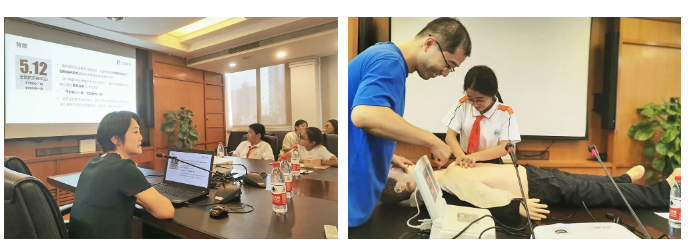 在《建筑災(zāi)害下的自救與互救》專題講座中,建科院結(jié)構(gòu)所研創(chuàng)中心博士們通過生動(dòng)演繹和講解,讓同學(xué)們了解了火災(zāi)、地震、恐怖襲擊、踩踏、風(fēng)災(zāi)、水災(zāi)等災(zāi)害下自救與互救辦法,總結(jié)了逃生口訣。同學(xué)們?cè)诘闹笇?dǎo)下體驗(yàn)了心肺復(fù)蘇術(shù)實(shí)操,加深了動(dòng)作記憶。