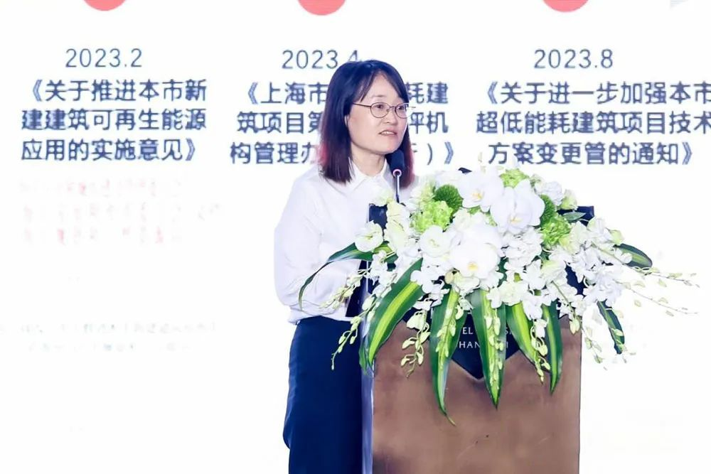 陳寧為論壇致辭并分享了近年來上海市在建設(shè)領(lǐng)域取得的綠色低碳發(fā)展成就。十四五以來全市已經(jīng)落實(shí)超低能耗建筑面積超1350萬平方米、近零能耗建筑試點(diǎn)90萬平方米和5個零碳建筑試點(diǎn),后續(xù)將圍繞雙碳戰(zhàn)略目標(biāo)重點(diǎn)開展四個方面工作,一是推進(jìn)綠色建筑條例立法,二是推動建筑節(jié)能從相對節(jié)能向?qū)嵭Ч?jié)能轉(zhuǎn)變,三是實(shí)施大型公共建筑能耗監(jiān)測平臺升級為建筑碳排放智慧監(jiān)管平臺,四是推動城市綠色低碳更新改造。