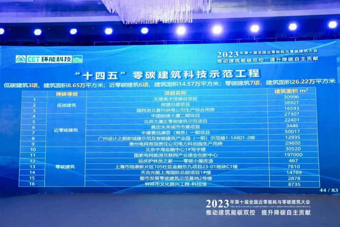 本次大會(huì)旨在通過探討適應(yīng)中國(guó)國(guó)情的技術(shù)體系,推動(dòng)我國(guó)近零能耗與零碳建筑朝著更加成熟規(guī)范的方向發(fā)展,助力建筑領(lǐng)域碳達(dá)峰與碳中和目標(biāo)實(shí)現(xiàn)。16個(gè)示范工程均經(jīng)行業(yè)專家嚴(yán)格評(píng)審,根據(jù)項(xiàng)目減碳水平差異,共分為低碳建筑、近零碳建筑和零碳建筑三個(gè)類型。