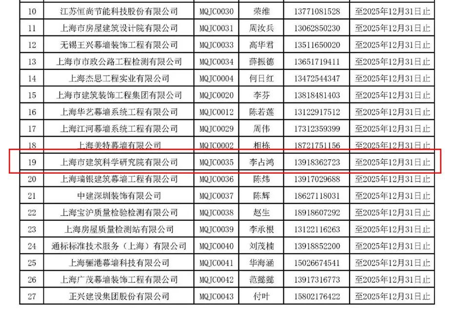 2023年上海市既有建筑幕墻現(xiàn)場檢查服務(wù)企業(yè)名單入圍