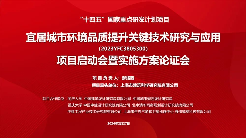 “宜居城市環(huán)境品質(zhì)提升關鍵技術研究與應用(2023YFC3805300)”項目由上海市建筑科學研究院有限公司作為牽頭單位,聯(lián)合同濟大學、中國建筑設計研究院有限公司、中國城市規(guī)劃設計研究院、重慶大學、北京清華同衡規(guī)劃設計研究院有限公司、上海市生態(tài)氣象和衛(wèi)星遙感中心、中國中建設計研究院有限公司、中建工程產(chǎn)業(yè)技術研究院有限公司、蘇州城室科技有限公司9家行業(yè)優(yōu)勢單位聯(lián)合攻關。本項目預期成果將形成宜居城市環(huán)境品質(zhì)提升關鍵技術體系與應用新范式,為傳統(tǒng)城市環(huán)建設模式帶來重大變革,對實現(xiàn)宜居城市環(huán)境品質(zhì)提升,促進我國城市綠色高質(zhì)量發(fā)展具有重要作用。