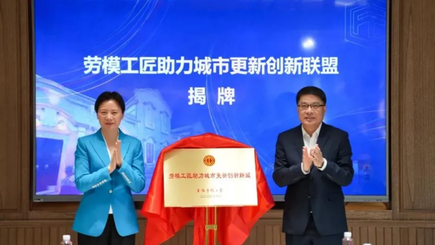4月10日,“上海勞模工匠助企行”助力城市更新創(chuàng)新聯(lián)盟和服務(wù)隊(duì)成立座談會(huì)在上海張園舉行。中華全國總工會(huì)副主席、書記處書記、黨組成員馬璐為上海市勞模工匠服務(wù)隊(duì)和上海勞模工匠助企行城市更新服務(wù)隊(duì)授旗。市建設(shè)交通工作黨委書記、市住房和城鄉(xiāng)建設(shè)管理委員會(huì)主任胡廣杰和市總工會(huì)黨組書記、副主席沈軍共同為創(chuàng)新聯(lián)盟揭牌。
