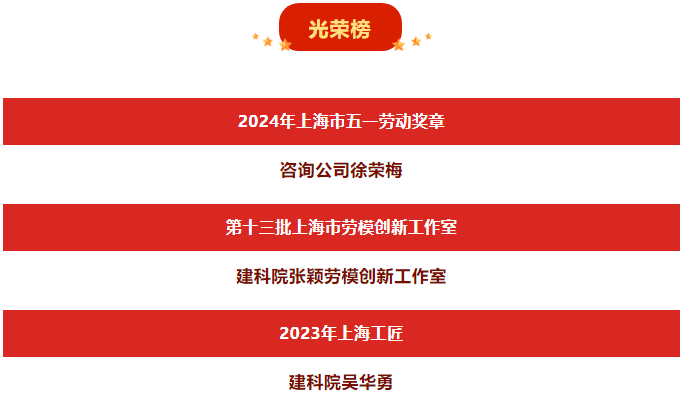 大會(huì)表彰了獲評2023年上海工匠,第十三批上海市勞模創(chuàng)新工作室,2024年上海市五一勞動(dòng)獎(jiǎng)狀、五一勞動(dòng)獎(jiǎng)?wù)?、工人先鋒號(hào),2024年全國五一勞動(dòng)獎(jiǎng)?wù)隆⒐と讼蠕h號(hào)等榮譽(yù)的先進(jìn)個(gè)人和集體。上海市建筑科學(xué)研究院有限公司張穎、吳華勇分別作為第十三批上海市勞模創(chuàng)新工作室、2023年上海工匠代表上臺(tái)領(lǐng)獎(jiǎng)。