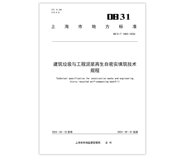 近日,由上海市建筑科學研究院有限公司聯(lián)合上海城建物資有限公司、北京建工資源循環(huán)利用股份有限公司等單位編制的上海市地方標準《建筑垃圾與工程泥漿再生自密實填筑技術規(guī)程》(DB 31/T 1483—2024)已經(jīng)上海市市場監(jiān)督管理局批準發(fā)布,將于2024年9月1日起實施。