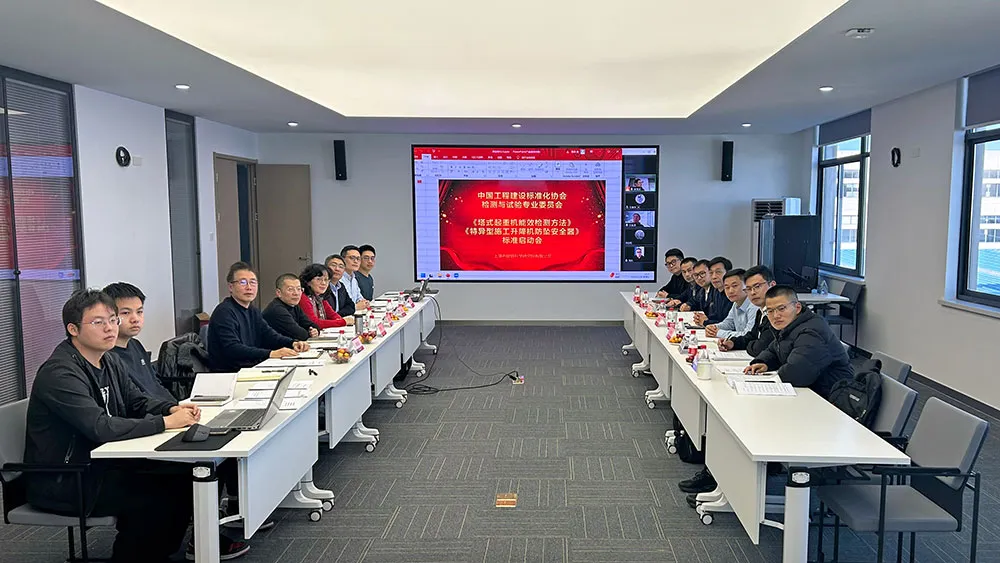 近日,由上海市建筑科學研究院有限公司主編的中國工程建設(shè)標準化協(xié)會標準《塔式起重機能效檢測方法》、《特異型施工升降機防墜安全器》編制組成立暨第一次工作會議在上海建科金山園區(qū)召開。中國工程建設(shè)標準化協(xié)會檢測與試驗專業(yè)委員會秘書長王景賢,秘書王紫瀟出席會議。上海建科院資深總工程師陳愛華,機械所黨支部書記兼所長韓文鶴及機械所班子、主參編單位代表近20人參會。本次會議采用線上線下相結(jié)合的形式,機械所總工程師王云飛主持會議。