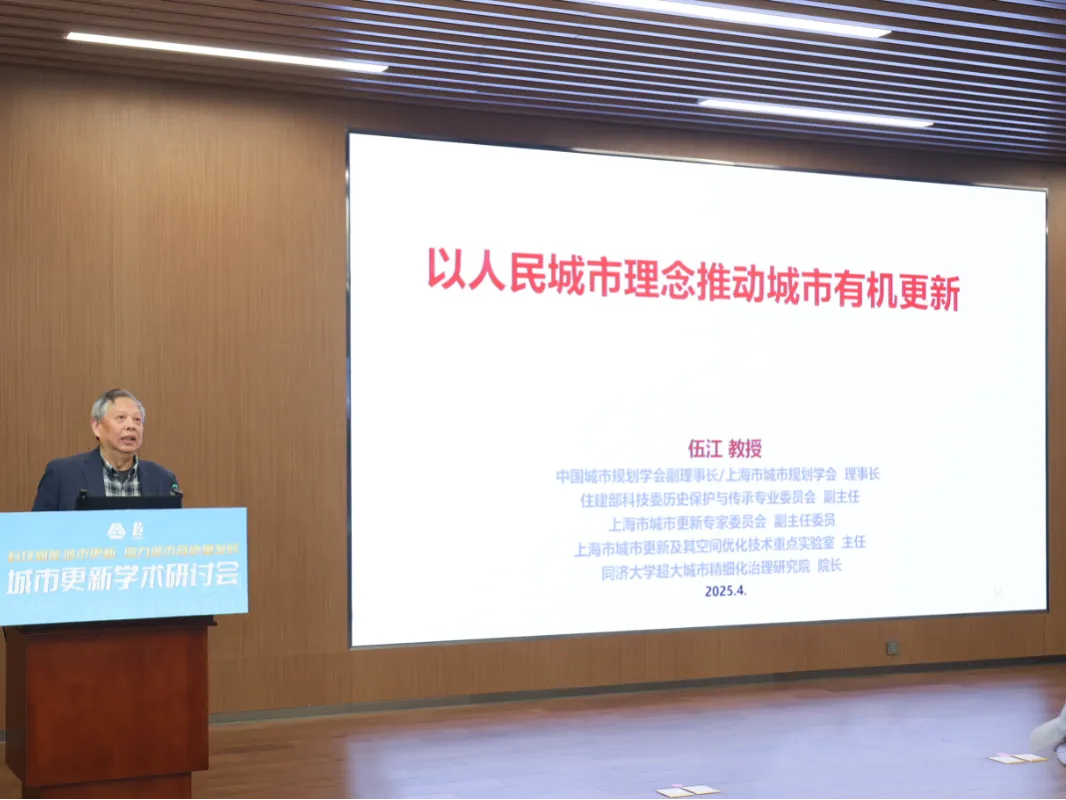 上海市城市更新專家委員會(huì)副主任委員、同濟(jì)大學(xué)教授、上海市城市更新及其空間技術(shù)優(yōu)化重點(diǎn)實(shí)驗(yàn)室主任伍江作《以人民城市理念推動(dòng)城市有機(jī)更新》主題報(bào)告。報(bào)告聚焦上海規(guī)劃建設(shè)發(fā)展實(shí)際,圍繞“人民城市”理念,解讀城市更新的要義與內(nèi)涵,闡述城市發(fā)展的核心價(jià)值所在,以及城市更新如何圍繞民生保障和城市公共服務(wù)水平提升,不斷提高人民群眾的幸福感和獲得感。