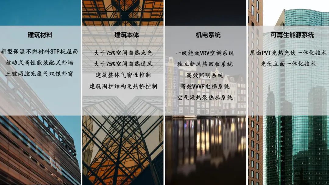 項目采用了被動式高性能裝配式外墻、三玻兩腔充氬氣雙銀外窗、一級能效VRV空調(diào)系統(tǒng)、空氣源熱泵熱水系統(tǒng)及PVT光伏一體化技術(shù)等多項超低能耗技術(shù),達到《上海市超低能耗建筑技術(shù)導則(試行)》的要求。