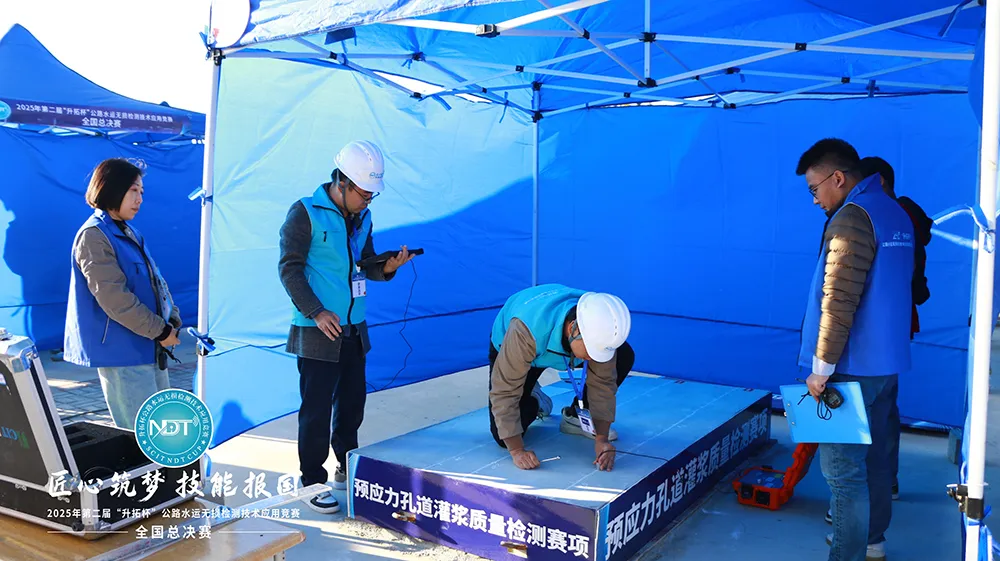 作為交通運輸行業(yè)無損檢測領(lǐng)域規(guī)格最高、規(guī)模最大、影響最廣的全國性職業(yè)技能賽事,“升拓杯”已成為服務國家戰(zhàn)略、推動行業(yè)技術(shù)高質(zhì)量發(fā)展、支撐現(xiàn)代化經(jīng)濟體系建設(shè)的重要平臺。本屆競賽以“匠心筑夢、技能報國”為主題,內(nèi)容緊密貼合實際工程需求,分為理論考核和技能操作兩大板塊,其中技能操作圍繞預應力孔道灌漿質(zhì)量檢測、錨桿長度檢測、橋梁結(jié)構(gòu)物聯(lián)網(wǎng)監(jiān)測三個關(guān)鍵項目展開,全面檢驗選手的理論素養(yǎng)與實際操作能力。