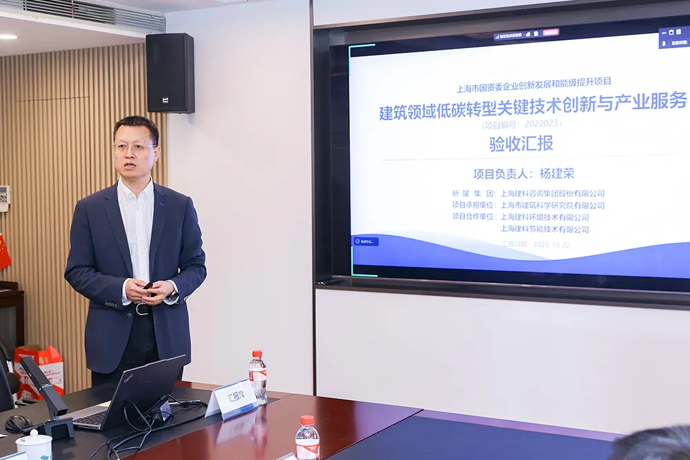 10月22日,上海市建筑科學研究院有限公司承擔的上海市國資委《建筑領(lǐng)域低碳轉(zhuǎn)型關(guān)鍵技術(shù)創(chuàng)新與產(chǎn)業(yè)服務(wù)》項目驗收會在上海建科咨詢集團徐匯園區(qū)順利召開。市國資委驗收工作組出席會議,上海建科咨詢集團總工程師周紅波,項目負責人、建科院黨委書記、董事楊建榮及項目研發(fā)骨干30余人參會。