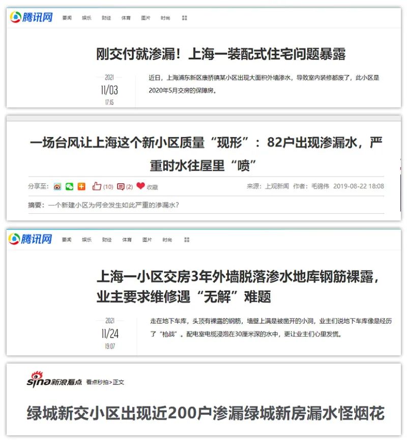 近年來,國家大力推廣裝配式住宅建筑,同時居民對住宅工程質(zhì)量的要求越來越高。住宅(特別是裝配式住宅)工程質(zhì)量問題,已成為炙手可熱的民生熱點問題,以滲漏水為主的工程質(zhì)量問題的報道和投訴層出不窮。