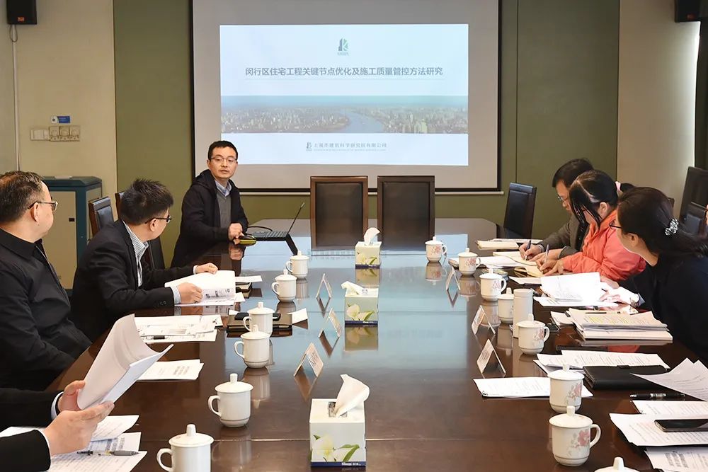 2021年12月1日,由上海市建筑科學研究院有限公司牽頭的《閔行區(qū)住宅工程關鍵節(jié)點優(yōu)化及施工質(zhì)量管控方法研究》課題向閔行區(qū)副區(qū)長汪向陽、區(qū)建管委、區(qū)規(guī)資局、區(qū)房管局等部門領導進行了成果匯報。上海建科院黨委副書記、總經(jīng)理蔣利學參加了匯報。