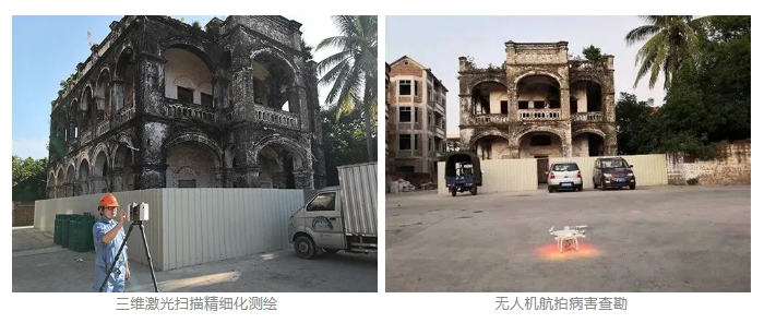 為了對文物建筑進(jìn)行全面、精細(xì)化的勘察,上海建科院現(xiàn)場勘察團(tuán)隊(duì)采用三維激光掃描儀對文物建筑進(jìn)行精細(xì)化掃描、測繪,使用無人機(jī)航拍對建筑病害進(jìn)行全面查勘,以數(shù)字技術(shù)助力項(xiàng)目保護(hù)修繕,讓中山紀(jì)念堂煥發(fā)生機(jī)和絢麗青春,以科技賦能歷史文化建筑遺產(chǎn)保護(hù)。