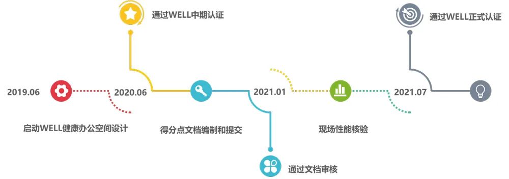 上海建科院于2019年上半年啟動(dòng)了十號(hào)樓健康室內(nèi)空間的專項(xiàng)設(shè)計(jì),秉持員工關(guān)懷和健康人本的核心理念,通過引入WELL健康人居技術(shù)體系,開展了從設(shè)計(jì)、施工、采購、調(diào)適和核驗(yàn)的全流程閉環(huán)管理,打造以人為本、綠色低碳、智慧高效的新一代辦公環(huán)境樣本。今年7月,項(xiàng)目順利通過了由第三方開展的現(xiàn)場(chǎng)性能核驗(yàn),最終以106分的高分通過了WELL鉑金級(jí)正式認(rèn)證,為歷時(shí)兩年的健康空間專項(xiàng)工作畫上了圓滿的句號(hào)。